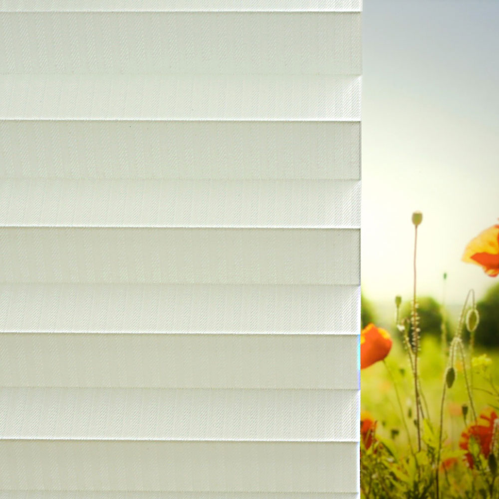 Der Plisseestoff WHI307 gehört zu unserem Stoffsortiment und bietet ein hervorragendes Preis- und Leistungsverhältnis. Unsere Stoffe zeichnen sich durch ihre Struktur, Stoffzusammensetzung und Veredlung aus und überzeugen durch hohe Qualitätsstandards, die regelmäßig durch strenge Kontrollen gesichert und überprüft werden. In Kombination mit unserem hochwertigen Schienensystem ist dieses Plissee ein Blickfang und kombiniert Eleganz und Design mit praktischem Nutzen.